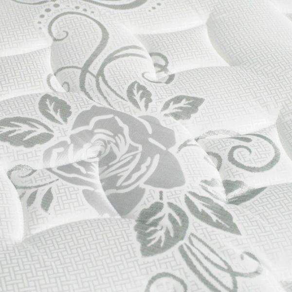 | Feat4 | Quilting: White Fabric With Grey Flowers. Multi Needle 5 Layer Quilting 0.5 oz. Fire Guard Barrier |