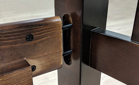 To reinforce our wooden bunk beds, we invented our special insert-and-lock joint structure, which is four times stronger and ensures the structural integrity of our beds. It’s environmental as well, accomplishing the same amount of strength with less amount of wood.